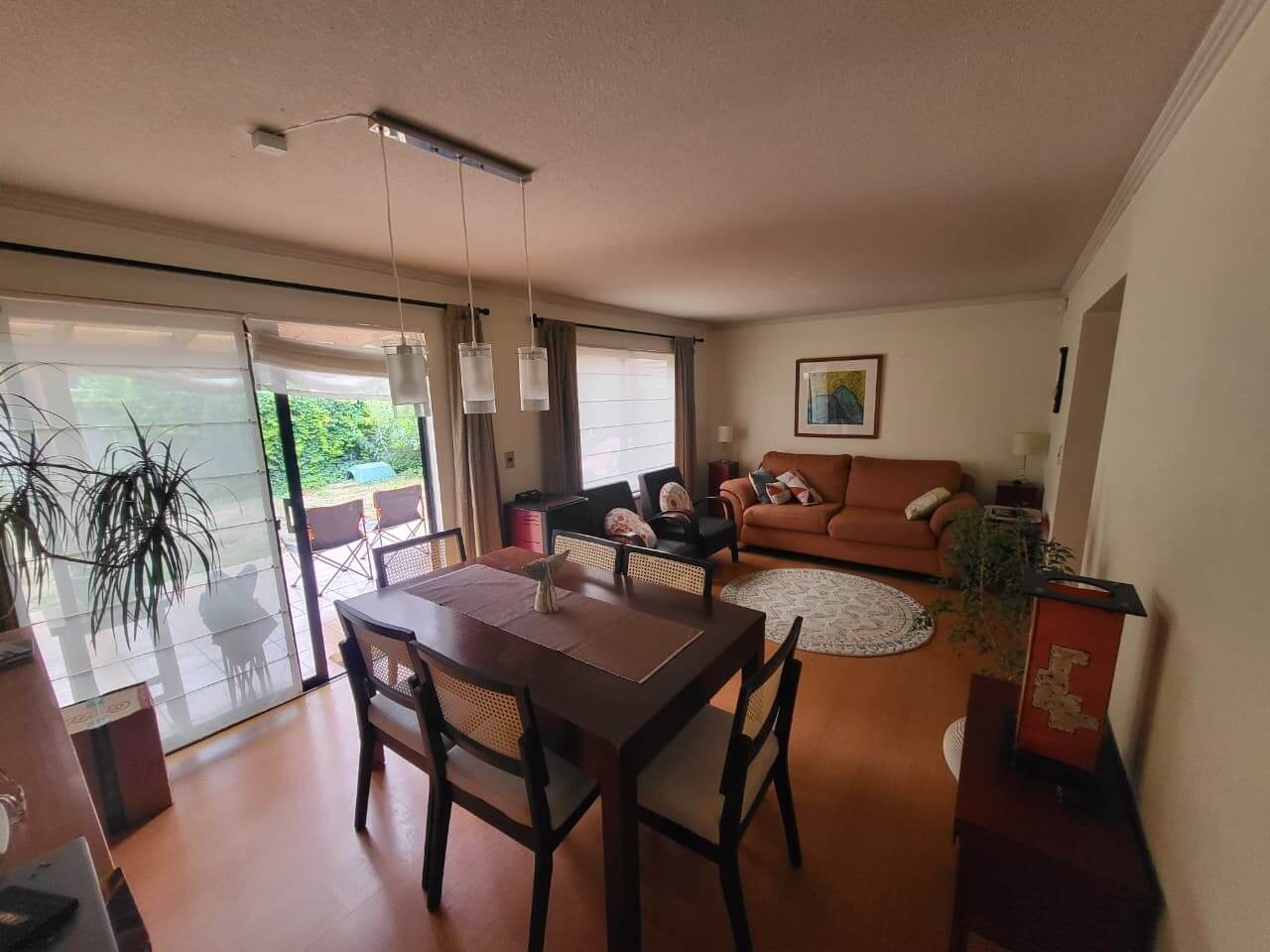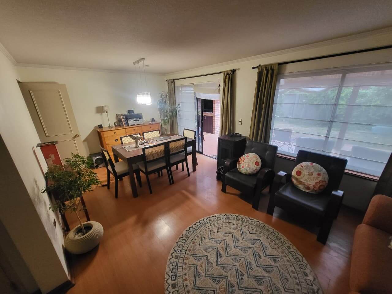 Amplio living comedor con piso flotante, ventanales termopanel y acceso directo al patio posterior.